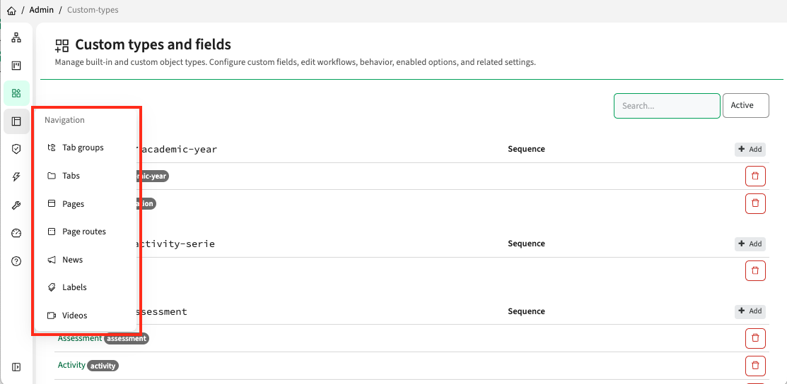 - A left side menu bar will appear, using the icons used on the main page too.